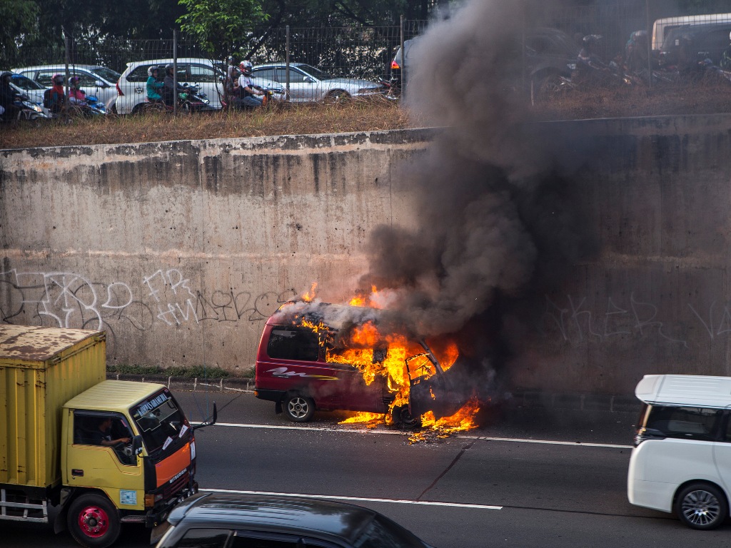 Toyota Innova Terbakar di Tol Kebon Jeruk Medcom id